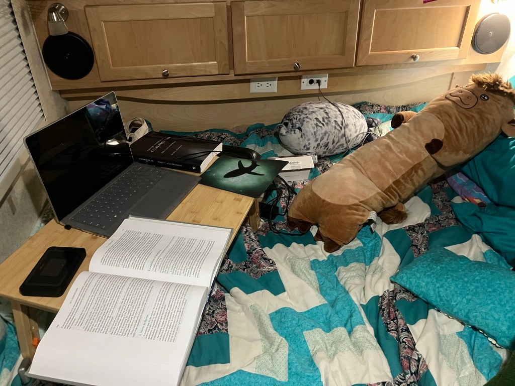 And I made it. Brett, from Glass America replaced my windshield while I was working on schoolwork at my campsite. A dear law school friend of mine lives 20 minutes away and for the first time in several days I simply rested. A walk, a home cooked meal, and finishing the first season of Ted Lasso (courtesy of patent law hypotheticals) was all it took. All the blessings.