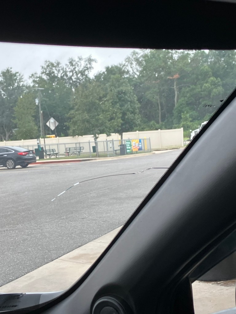 Over my music, driving in the darkness, I heard a loud crack, but everything seemed to be ok. After a restless night, with poor sleep, almost two days of no meals and just snacks, I reached the first rest area in Florida in the early morning. There was a spot for me to park, I changed into my pajamas, brushed my teeth, took some Sudafed, as I was starting to not feel great and blissfully passed out for about an hour and half.